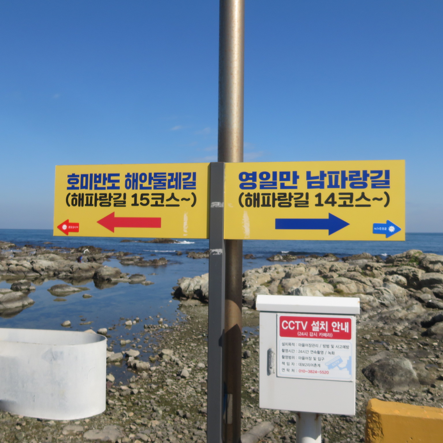 해파랑길의 15번째 코스로 포항구간 포항 남구 호미곶면에서 동해면을 잇는 길
